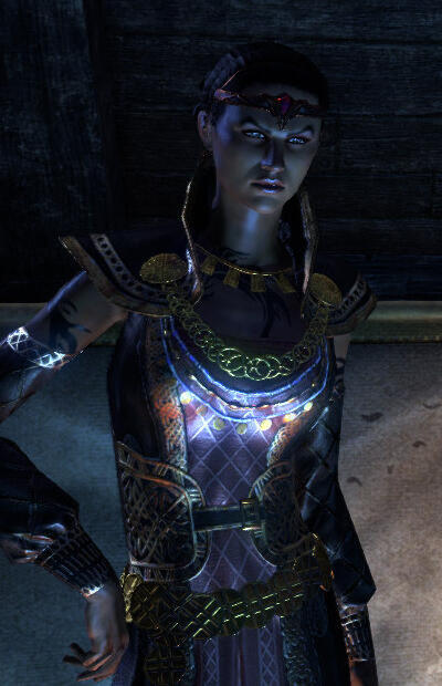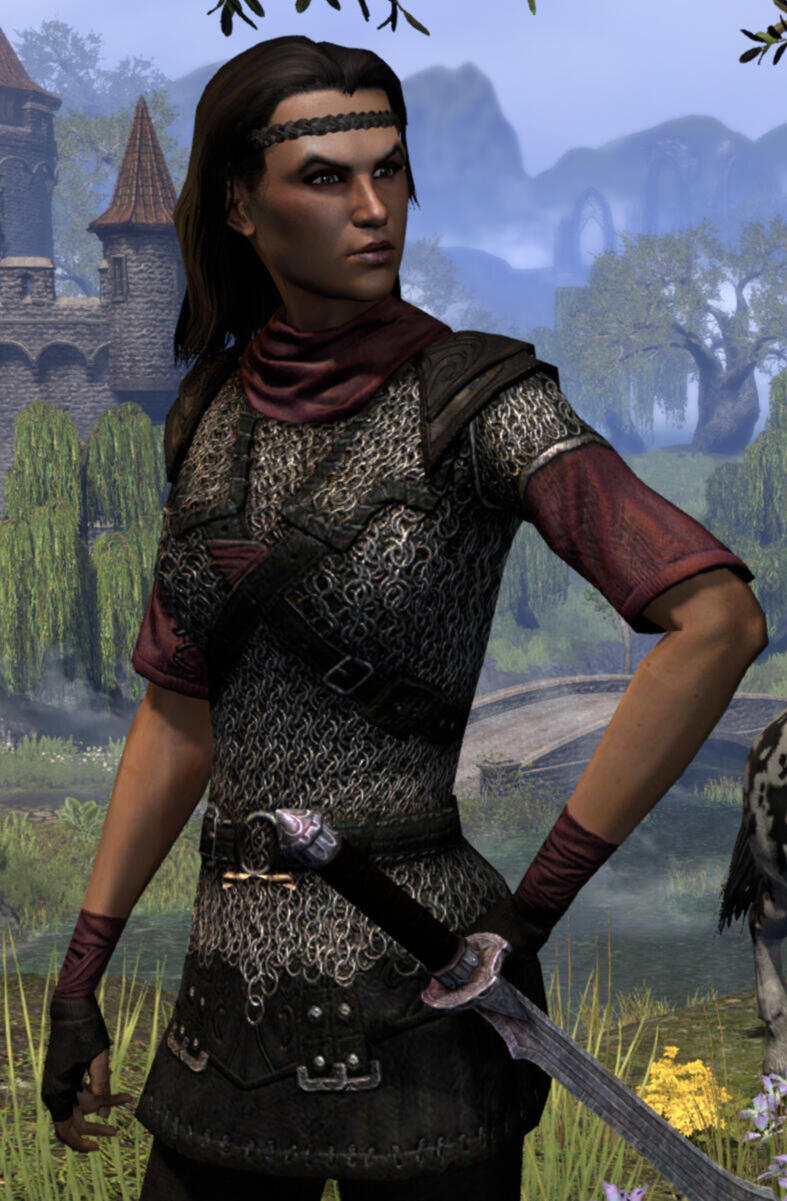 Nelvyna is a noble scion of House Hlaalu. She cultivated a reputation as a well-liked socialite and capable diplomat among Morrowind's high society early on, and found particular amicable reaction among House Redoran for her ardent veneration and even emulation of the Warrior-Poet.Nevertheless, her further development followed expected paths - she completed her education at the Shad Astula Academy, was granted an estate at Amaya Lake which she developed into a comberry plantation, was involved with the Hlaalu Construction Syndic around Balmora and Suran, and served House Hlaalu in a variety of diplomatic functions.What did catch nigh everyone by surprise was when she seemingly overnight joined the Buoyant Armigers and donated a large portion of her personal fortune and ongoing profits to the Tribunal Temple.Since then her presence at her own estate has become much rarer, mere breaks between growingly daring adventures. Often enough she spends significant portions of that time - and gold - on lavish feasts, inviting nobility, merchant, adventurer and anyone else she may fancy alike.