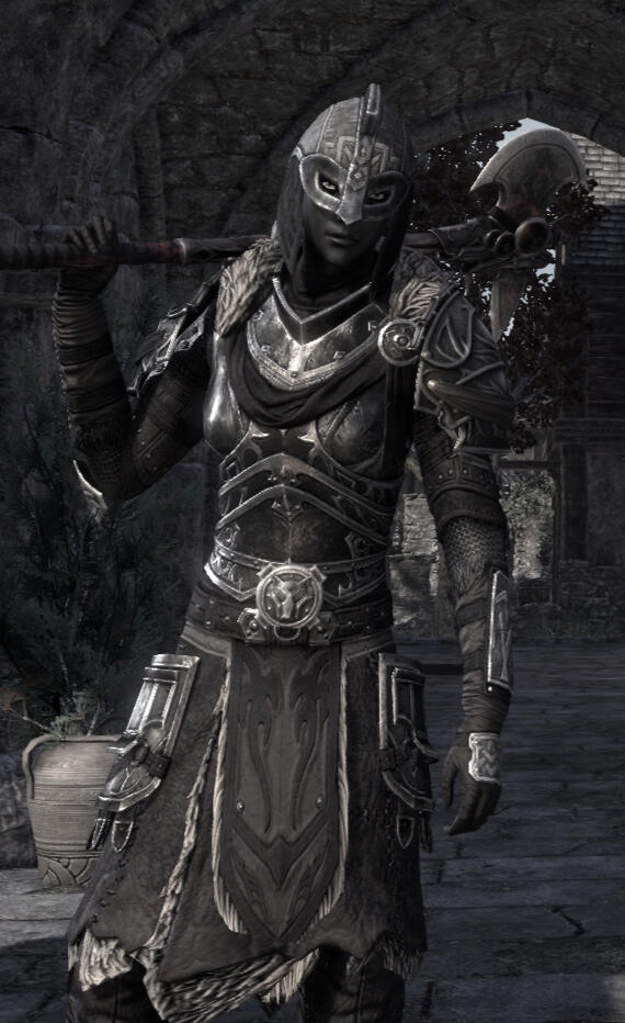 Jazraena is a Dunmer who arrived in Solitude sometime during the spring of 2E588, setting up her alchemy business soon after. Though reception has been as frosty as one would expect of the western nords, the locals have slowly started to warm up to the foreigner; no doubt assisted by her business and her occasionally lending her medical skills to treat minor ailments and injuries. Coupled with her dress and mannerisms often being more reminiscent of a Nord - if an unusually reserved one - than a daughter of Morrowind most who have interacted with her to any length consider her to be reliable and quite alright - for a dark elf, anyway.